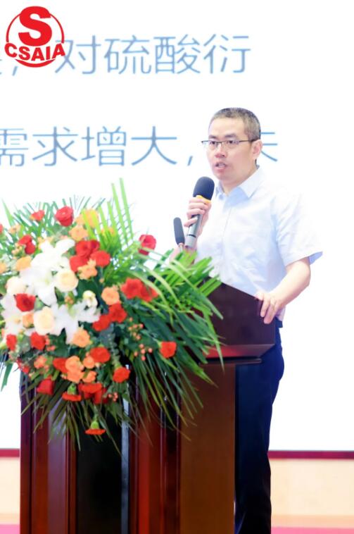 中国硫酸工业协会副秘书长廖康程做了题为“硫酸行业运行情况及展望”的报告,他指出,2023年底,我国硫酸有效产能1.35亿吨,同比增长4%,较5年前增长超1200万吨,其中冶炼酸产能增幅较大。2023年我国硫酸新建产能超过700万吨/年。2023年,全国硫酸产量1.11亿吨,同比增长4.2%,其中冶炼酸和矿酸产量有较大幅度增长,硫黄制酸产量同比略有下降,冶炼酸产量占比41.2%,历史首次超过硫黄制酸,成为我国最大的制酸品种。2023年我国硫酸行业平均开工率为82.8%,同比上升0.2个百分点。2023年我国出口硫酸250.7万吨,同比下降31.2%;进口硫酸32.2万吨,同比增长17.0%。2023年我国硫酸消费量总计1.09亿吨,同比增长5.5%,其中工业用酸略多于化肥用酸。2023年全国硫酸平均价格为189元/吨,同比下降64.9%。价格波动依然较大,最高点在240元/吨,最低点在95元/吨。2024-2026年新建产能累计超过3000万吨/年,有约10%是搬迁项目,有约一半的硫黄制酸和硫铁矿制酸是与磷酸铁锂、己内酰胺、氢氟酸等下游产品配套的项目,剩余的超过1000万吨的新建硫酸产能尚未配套下游需求,这将对现有的硫酸市场带来冲击。进入2024年后,铜冶炼加工费急转直下,截止5月,已经跌至加工成本之下。在此条件下,铜冶炼企业将很难再维持高开工率,冶炼酸的开工率也将随之下降。在国内硫酸产能过剩的背景下,我国硫酸有较大的出口潜力;以印尼为主的东南亚市场有较大的进口硫酸潜力,这是中国硫酸出口的机会;此外,欧洲对俄罗斯的禁运,造成俄罗斯国内大量工业品的紧缺,也是中国硫酸出口俄罗斯的机会。