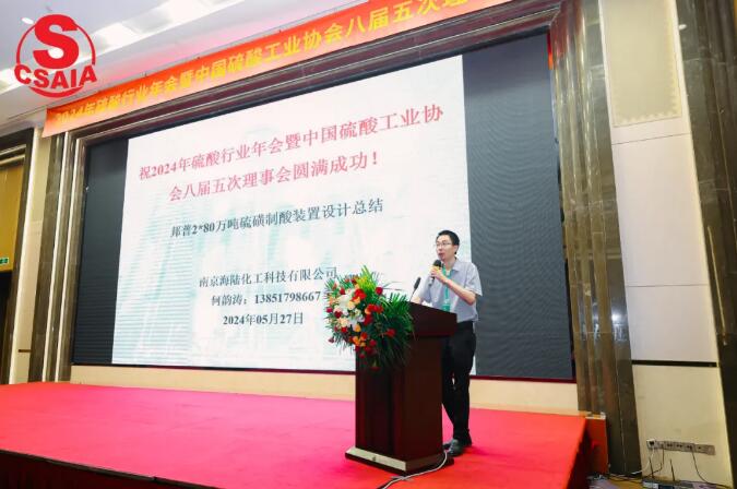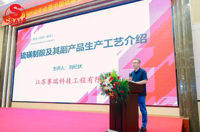 江苏庆峰工程集团有限公司副总经理姚明华做了题为“硫酸衍生产品多元化发展及应用实践“的报告,他指出,随着传统硫酸消费领域用酸量的减少,加之各种冶炼酸、脱硫烟气制酸的大量涌现,市场硫酸产量严重过剩,导致很多制酸企业生存困难,另一方面,随着新能源、集成电路、芯片等行业的蓬勃发展,对硫酸衍生产品如液体SO2、液体SO3、发烟酸、精制硫酸等产品的需求增大,未来将迎来硫酸衍生产品的高速发展,市场需求旺盛。江苏庆峰一直致力于硫酸衍生产品的工艺创新,为用户降低硫酸胀库风险,积极寻求硫酸产品新的出路,致力于液体SO2、液体SO3、发烟酸、精制硫酸等产品的研发和应用,探索出适合市场需求的新产品。液体SO3通过还原法生成液体SO2,通过烟酸吸收生成65%发烟酸及各种精制硫酸。硫酸衍生产品行业对技术、人才、装备提出了新的更高的要求,江苏庆峰近几年的发展战略紧随市场变化而调整,吸纳行业的优秀人才,引进先进的项目管理理念,装配尖端的数字化机床和焊接机器人等先进设备,利用先进的检测工具和方法,与高等院校和硫酸行业设计院深度合作,调配优质资源,攻坚克难。在硫酸多元化发展方面取得了一定成就,也积累了丰富的设计、制造、安装经验。产品的多元化对硫酸行业的发展增添了新的动能,为硫酸行业的可持续、绿色健康的发展带来积极的影响。